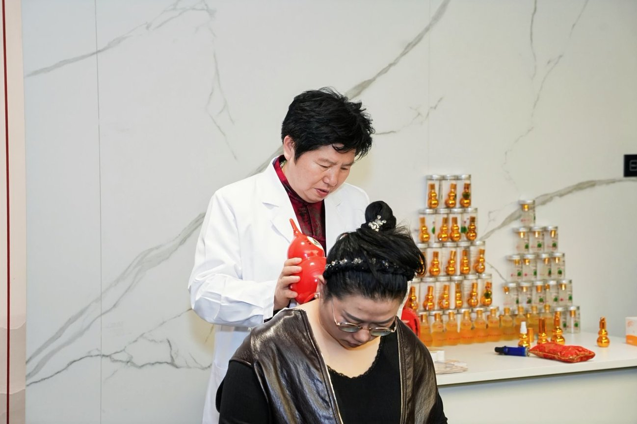 参会者体验华佗夹脊穴葫芦灸颈椎康复服务