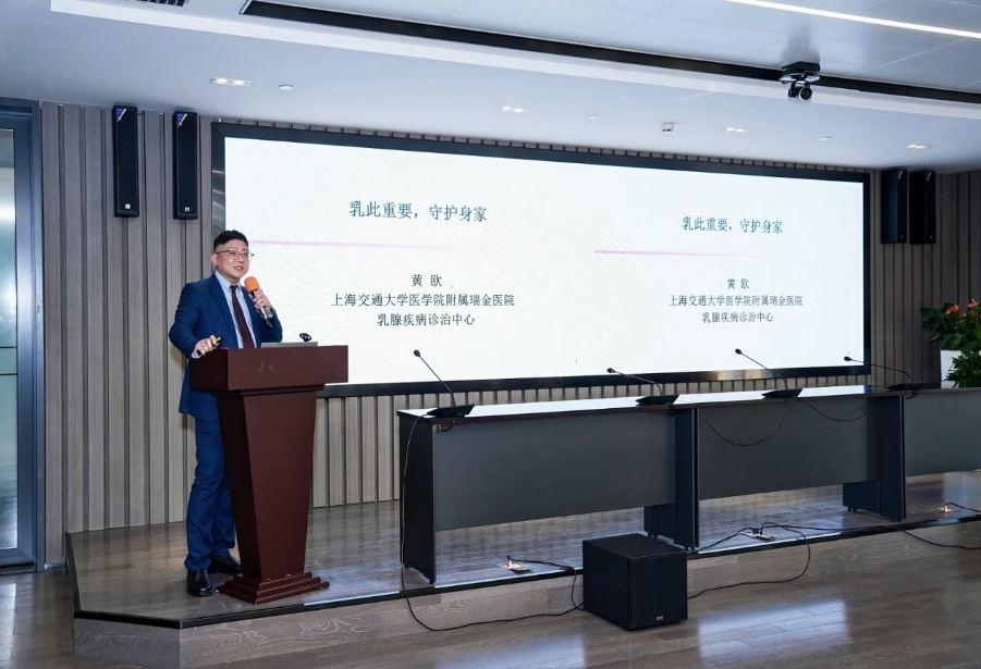 活动特别邀请上海交通大学医学院附属瑞金医院乳腺疾病诊治中心联合创始人、主任医师黄欧博士担任主讲嘉宾。黄博士以其编著的《乳房保卫战》为蓝本,带来了一场生动的乳腺健康科普讲座,并分享了书中的核心研究成果。他用通俗易懂的语言讲解乳腺疾病防治要点,引导在场听众树立科学健康观。